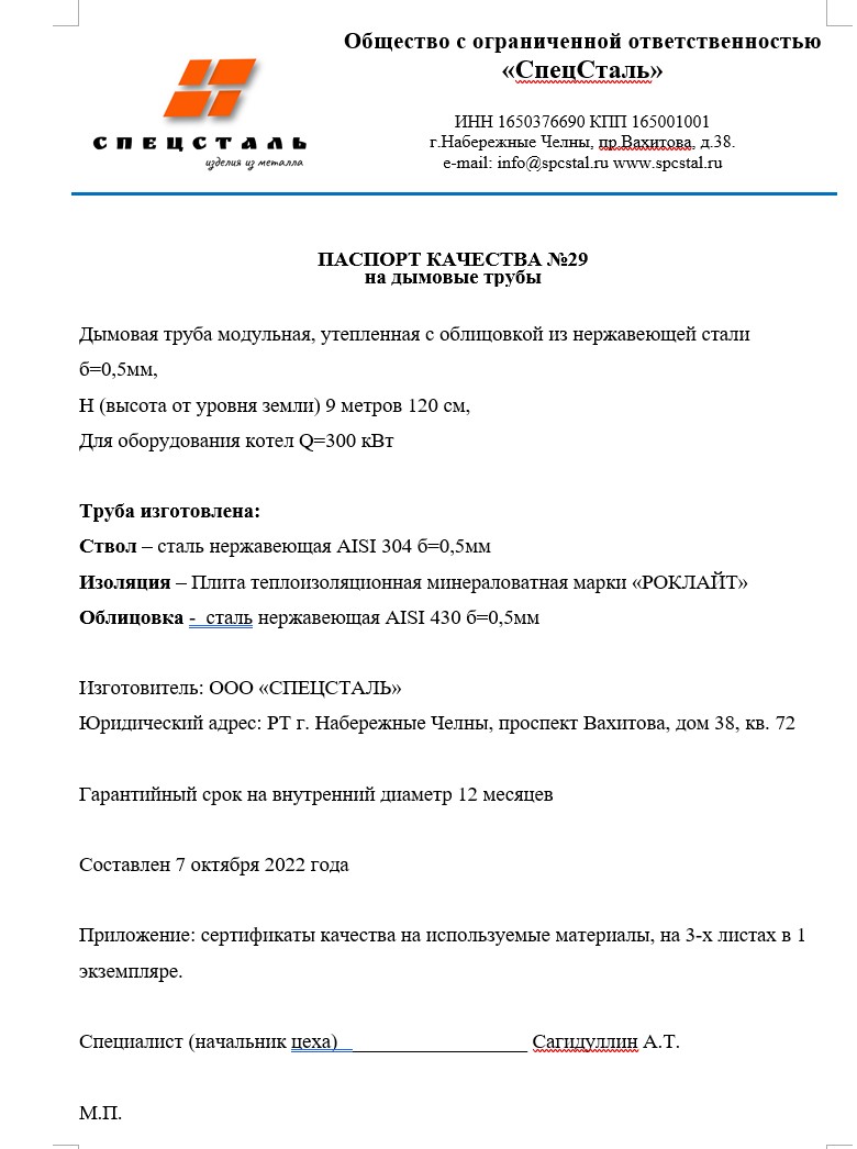 Сертифицированные материалы: нержавеющая и оцинкованная сталь.